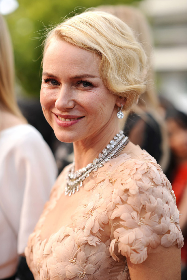 En la alfombra roja de Cannes, Rachel lleva el pelo en ondas retro, con una raya larga y las mechas suaves y doradas.